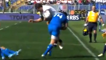 Wednesday Mar 19, 2014 Angelo Esposito's big tackle on Jonny May in Rome