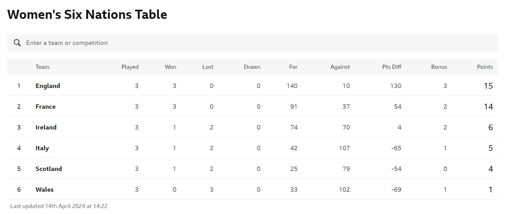 Wales looked tired and dejected throughout, but there will be green shoots of hope in the form of young forward Gwennan Hopkins who joined the fray in the 60th minute, scored Wales lone points five minutes later and looked to be an exciting prospect, burning through tackles and throwing herself into the game with abandon. If Ioan Cunningham’s team can all channel that energy, they have a hope of turning around what has been a sorry tournament so far for Wales.