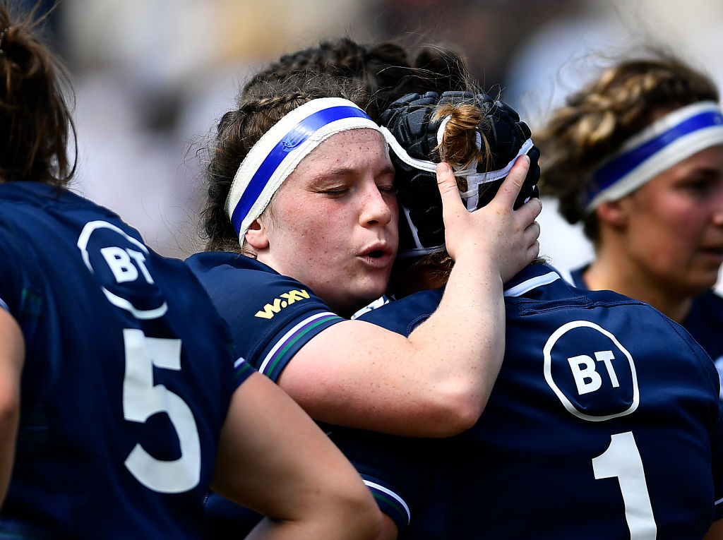 CAPE TOWN, SOUTH AFRICA – OCTOBER 27: Evie Gallagher of Scotland celebrate during the WXV 2 match between Scotland and Japan at Athlone Stadium on October 27, 2023 in Cape Town, South Africa. (Photo by Ashley Vlotman/Gallo Images)