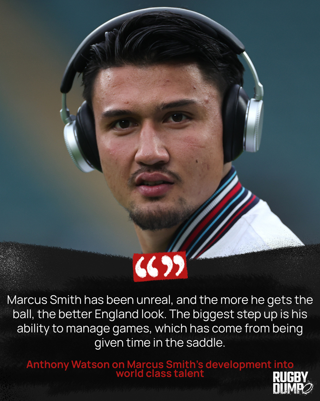 “Marcus Smith has been unreal, and the more he gets the ball the better England look. The biggest step up is his ability to manage games, which has come from being given time in the saddle, but also being around guys like Fordy and Faz and seeing how they operate and what they look for.