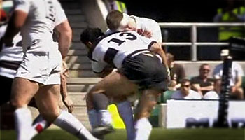 Today the Barbarians play again, this time against Wales at the Millennium Stadium. Last weekend they played England, and got a bit of a hiding but not without leaving a few bruises, with this hit in particular standing out.