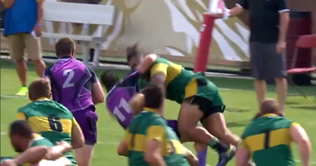 On Sunday, the Sacramento Express and the Denver Stampede met in week 14 of the inaugural season for Pro Rugby USA. In the second half we saw this encounter between an up and coming wreckingball, and an experienced former League star.