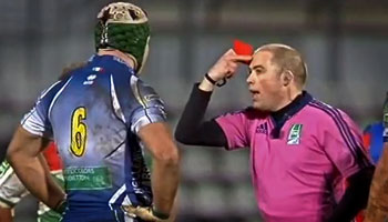After 24 minutes flanker Francesco Minto decided to attempt a clearout on scrumhalf Yann Lesgourgues with his head. You can only wonder what he was thinking as he leaned in and floored the smaller man, who took a long time to recover from the impact.