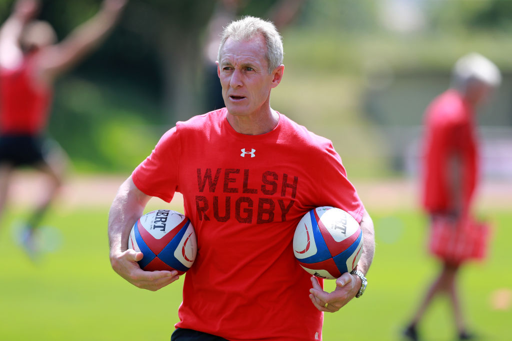 NATERS, SWITZERLAND – JULY 20: Rob Howley, the Wales backs caoch looks on during the Wales pre Rugby World Cup training match on July 20, 2019 in Naters, Switzerland. (Photo by David Rogers/Getty Images)