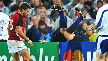As with ’95 when James Dalton and Scott Stewart came running in, this one threatened to kick off as some of the French players obviously took exception to Pritchard’s push, and perhaps more so, the way he showed little regard for Clerc after contact.