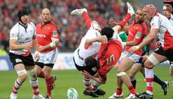 Ulster’s John Afoa has been suspended for four weeks following a dangerous tip tackle he made on Munster’s Felix Jones in the second half of their Heineken Cup quarter final at Thomond Park on Sunday. Here is a look at it, and an explanation of the ruling.