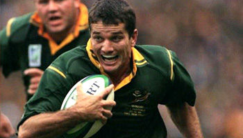 He left his mark on three world cup tournaments with his rugged defence and aggressive, sniping runs whenever he spotted a half gap. His tackle in the 1995 final on the then ‘unstoppable force’, the rampaging Jonah Lomu, was to go down in rugby folklore, but was to become just one moment in a long list of highlights, including a hat-trick against Scotland at Murrayfield, a Tri-Nations championship and the 1995 World Cup victory.