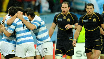 Argentina came from behind to beat Scotland in the driving rain of Wellington. Scotland seemingly had the game in control, but a brilliant solo effort from Lucas Amorosino caught them off guard before Felipe Contepomi converted for a 13-12 win.