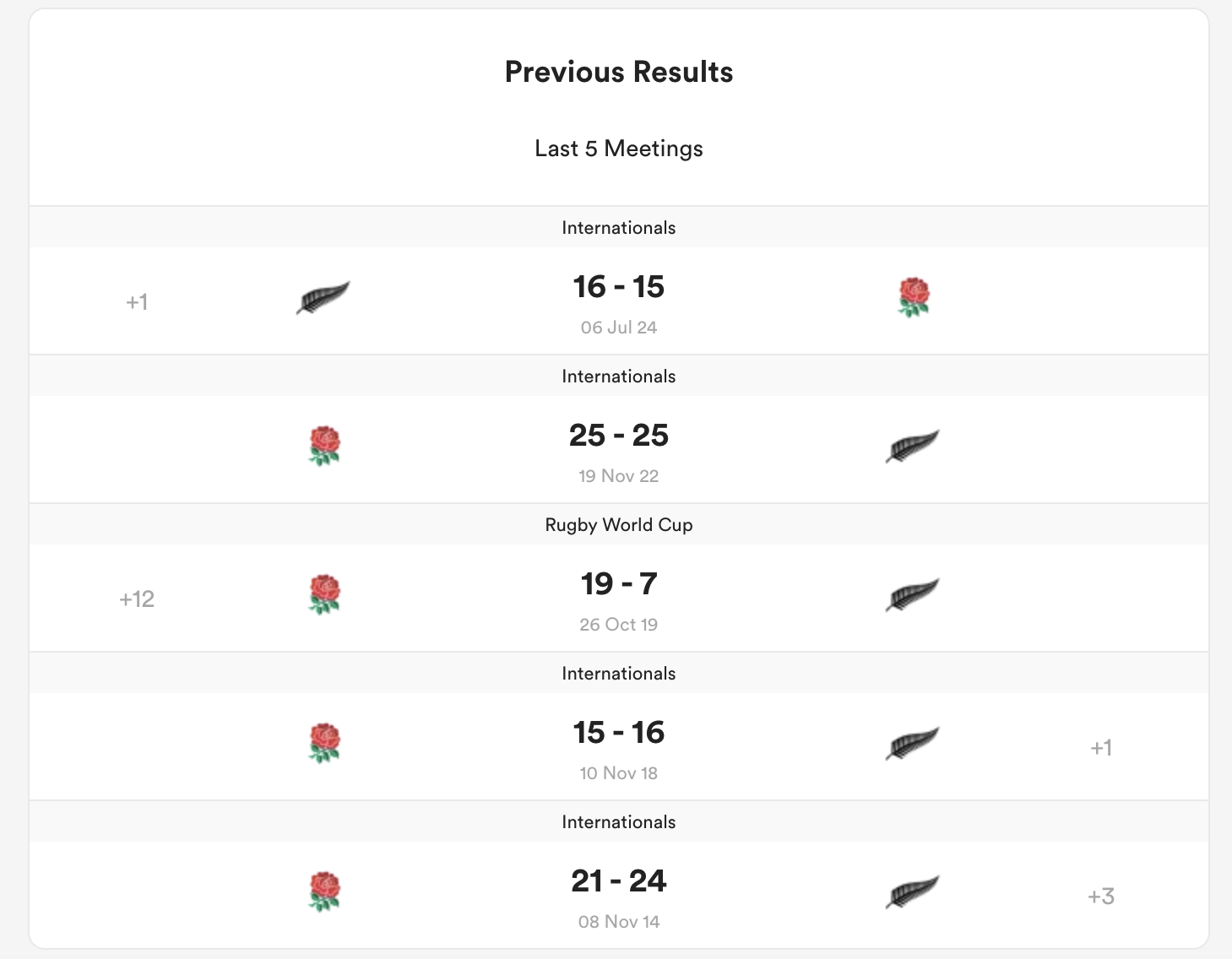 In the 44-game history between the two sides, England has only won 8 times whilst the All Blacks have won 34 times, with just the two draws.