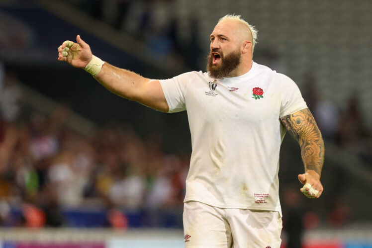 LILLE, FRANCE – OCTOBER 7: Joe Marler of England thanking the suppoorters after the match during the Rugby World Cup France 2023 match between England and Samoa at Stade Pierre Mauroy on October 7, 2023 in Lille, France. (Photo by Hans van der Valk/BSR Agency/Getty Images)