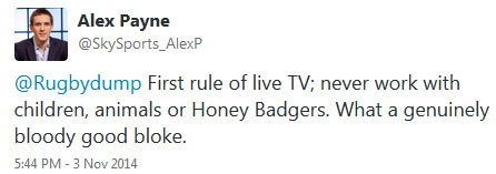 “It was bloody enjoyable rugby mate” said the Honey Badger, summing up the thoughts of everyone watching the thoroughly entertaining game.