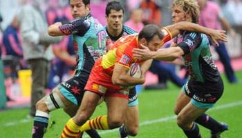 Perpignan upset hosts Stade Francais 20-14, with great tries by Maxime Mermoz and Jerome Porical, who got a personal tally of 15 points. This was despite the home side scoring first through a nice move and try to Hugo Southwell.