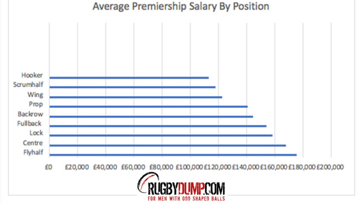 In a similar vein the scrumhalf is the lowest paid position of the backline players, this could in part be reflected in the current English international set-up where Eddie Jones has remained true to Ben Youngs throughout his tenure.