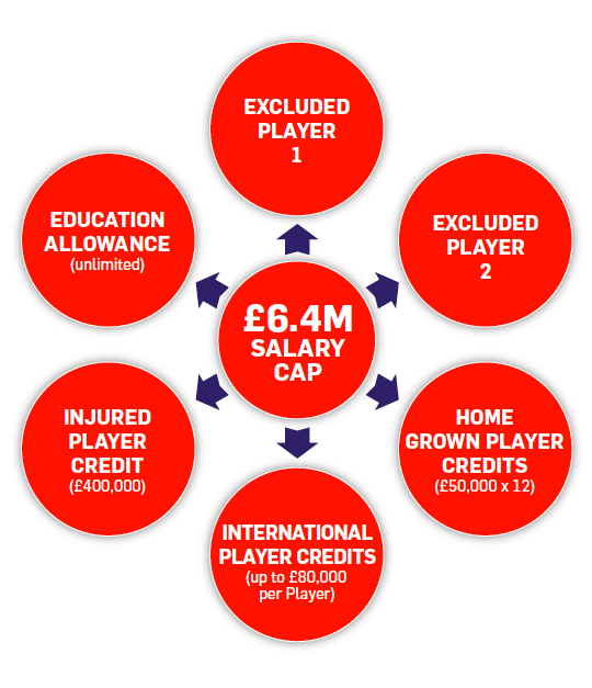 In total the 13 clubs spent a total £94,772,353 on their senior squads for an average of £7,290,181 per club. Given that the salary cap itself was £6.4m in that period, it shows just how crucial the homegrown player allowance is for clubs to have sufficient depth.
