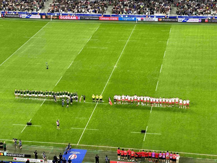 The atmosphere at the Orange Velodrome buzzed with the warm air of thousands of Springbok and Tongan fans on Sunday night as the two sides lined up to take part in the final of their World Cup pool stage matches.