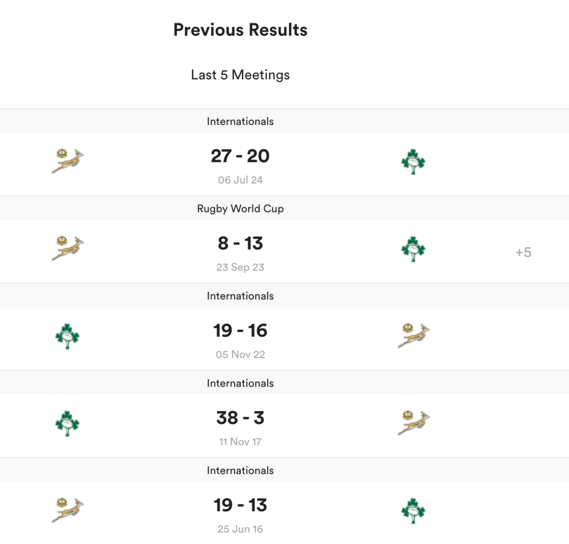 During the 29 overall matches between the two sides, Ireland have won just 9, compared to South Africa’s 19, with just one draw between them.