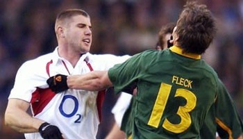Springboks vs England 2002 at Twickenham. One of the games that tarnished the Boks reputation. If it wasn’t Robbie, it was Corne, but here Robbie Fleck gets in a cheap shot on Ben Cohen. The ref decided that it wasn’t worthy of a yellow card for some reason.