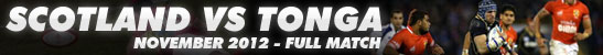 Scotland vs Tonga November 2012 - Full Match BY Grant Constable · Tuesday Nov 27, 2012 Full match replay of Tonga’s win over Scotland in AberdeenView match highlightsTime: 1:51:06Credit: lelostreamADVERTISEMENT Posted By: Grant Constable Share Send Thanks Sorry there has been an error Full Matches