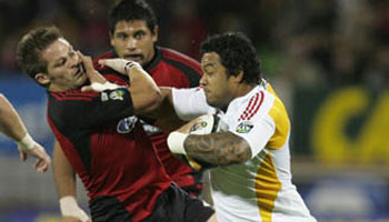 Sione Lauaki runs into All Black & Crusaders skipper Richie McCaw. Listen to how surprised the commentator is when he realizes that it’s the All Black Captain who just got shrugged off by Lauaki’s huge fend.