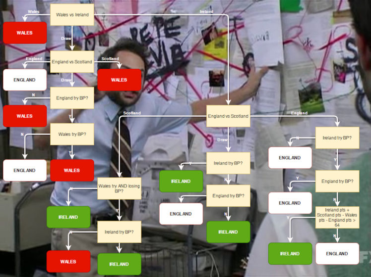 In fact, there are 16 different ways the championship can be won by the three competing nations. The simplest scenario is that Wales beat Ireland to win the Grand Slam in Cardiff, but if Ireland win then there are a whole range of possible outcomes depending on score lines and results.