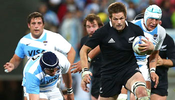 The All Blacks remain unbeaten in the inaugural Rugby Championship following a tough battle with Argentina in wet and windy Wellington on Saturday night. Los Pumas put up a spirited fight but went down 21-5 to the seasoned World Champion hosts.