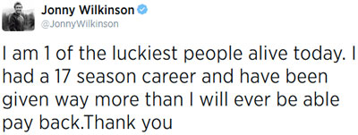 Congratulations to all involved and farewell to the likes of Wilkinson, and former Springboks Danie Rossouw and Joe Van Niekerk, who are also retiring from rugby.