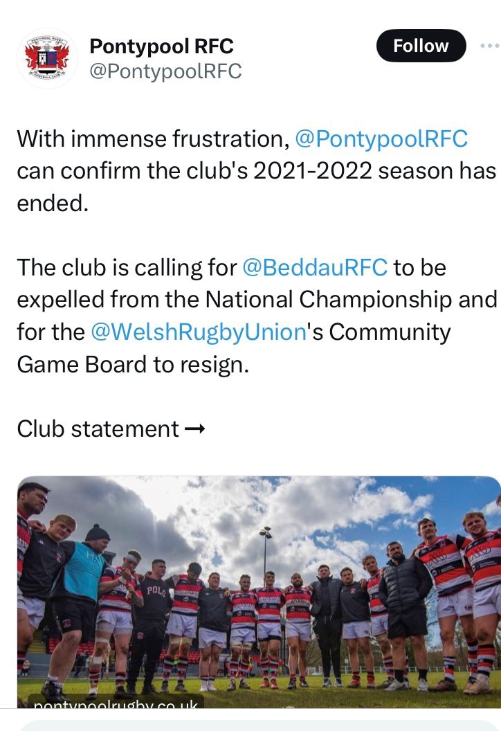 Will RGC push for Pooler to be expelled from the league?…. Just as when they stuck the boot into Beddau RFC in 2022? 👀 pic.twitter.com/G2V82srlf3